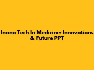 Inano Tech In Medicine: Innovations & Future PPT