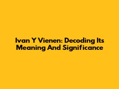 Ivan Y Vienen: Decoding Its Meaning And Significance