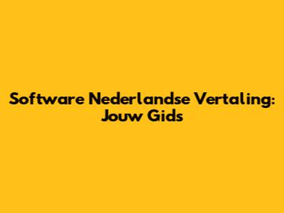 Software Nederlandse Vertaling: Jouw Gids