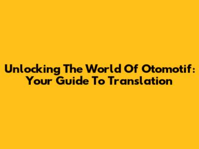 Unlocking The World Of Otomotif: Your Guide To Translation