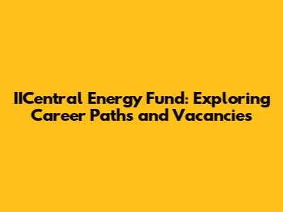 IICentral Energy Fund: Latest Job Openings & Career Opportunities