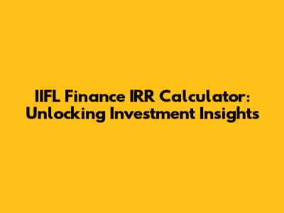 Diving into the IIFL Finance IRR Calculator