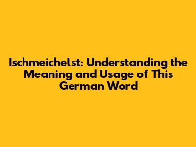 Why Understanding "Ischmeichelst" Matters