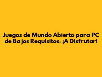 Los Mejores Juegos de Mundo Abierto para PC de Bajos Requisitos