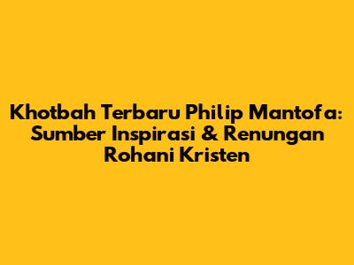Khotbah terbaru Philip Mantofa selalu menjadi sorotan bagi banyak jemaat Kristen di Indonesia. Dengan gaya penyampaian yang khas, penuh semangat, dan sarat makna, khotbah-khotbah Philip Mantofa mampu menyentuh hati dan memberikan inspirasi bagi siapa saja yang mendengarkannya. Jika kamu mencari renungan rohani yang mendalam, khotbah-khotbahnya adalah pilihan yang tepat. Mari kita telaah lebih dalam tentang khotbah terbaru Philip Mantofa, apa yang membuatnya begitu istimewa, dan bagaimana khotbah ini dapat memperkaya iman kita.
