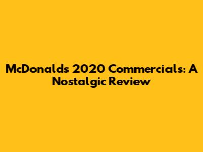 McDonald's 2020 Commercials: A Nostalgic Review