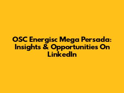 OSC Energisc Mega Persada: Insights & Opportunities On LinkedIn