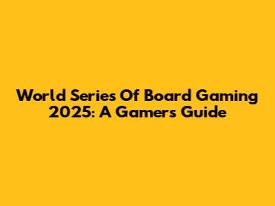 World Series Of Board Gaming 2025: A Gamer's Guide