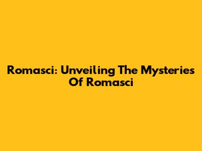 Romasci: Unveiling The Mysteries Of Romasci