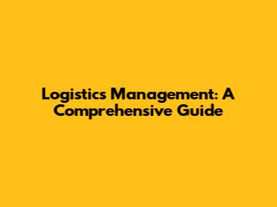 Logistics Management: A Comprehensive Guide