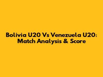 Bolivia U20 Vs Venezuela U20: Match Analysis & Score