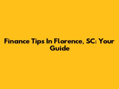 Finance Tips In Florence, SC: Your Guide