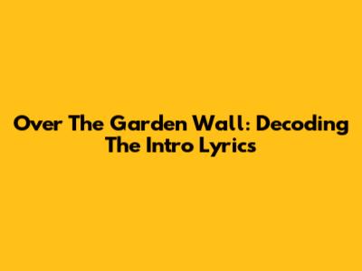 Over The Garden Wall: Decoding The Intro Lyrics