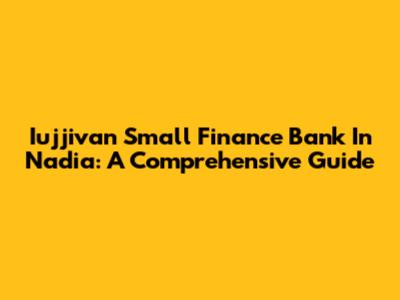 Iujjivan Small Finance Bank In Nadia: A Comprehensive Guide