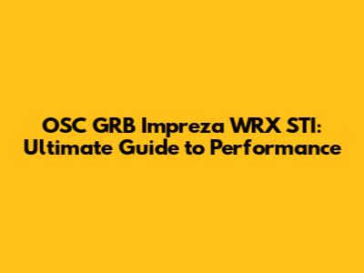 Common Issues and Maintenance Tips for the OSC GRB Impreza WRX STI