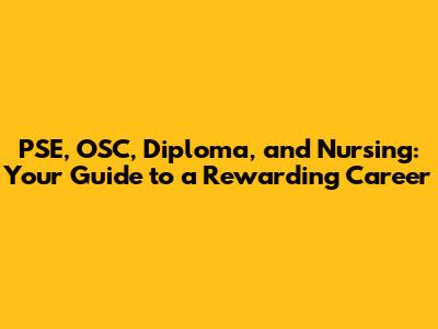 Hey everyone! Are you guys pondering your next career move, maybe looking at the fields of nursing, or considering educational paths that could lead you there? Well, you've stumbled upon the right place! We're diving deep into the world of PSE, OSC, diplomas, and, of course, nursing. This guide is your friendly companion, breaking down everything you need to know, from the initial steps to the exciting possibilities that await. Whether you're a high school graduate, a career changer, or simply curious, we'll navigate the pathways, clarify the jargon, and help you chart your course. Let's get started, shall we?