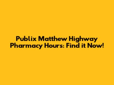 Are you looking for the Publix Matthew Highway Pharmacy hours? Knowing the pharmacy hours can save you time and ensure you can pick up your prescriptions or get health advice when needed. This article will provide you with all the information you need about the pharmacy hours, services, and other essential details about the Publix Pharmacy on Matthew Highway.