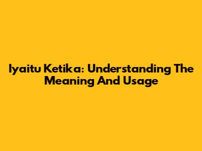Iyaitu Ketika: Understanding The Meaning And Usage