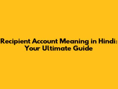 Recipient Account Meaning In Hindi: A Comprehensive Guide