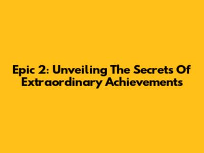Epic 2: Unveiling The Secrets Of Extraordinary Achievements
