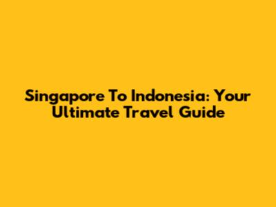 Singapore To Indonesia: Your Ultimate Travel Guide