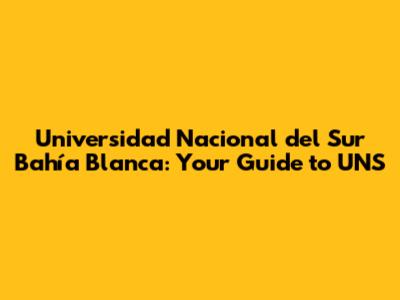 Hey guys! Today, we're diving deep into the Universidad Nacional del Sur (UNS) in Bahía Blanca, Argentina. Whether you're a prospective student, a curious researcher, or just someone interested in South American universities, this guide is for you. We'll cover everything from its history and academic offerings to student life and what makes UNS a fantastic place to study. So, grab a mate and let's get started!