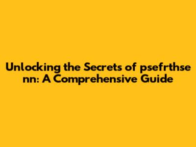 Unlocking The Secrets Of Psefrthse Nn: A Comprehensive Guide