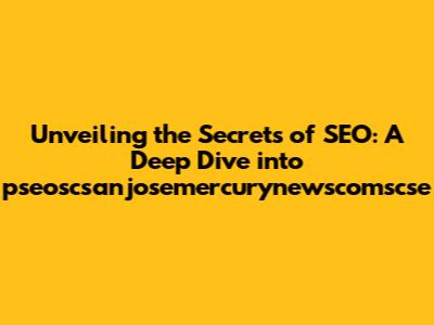 Unveiling The Secrets Of SEO: A Deep Dive Into Pseoscsanjosemercurynewscomscse