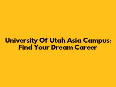 University Of Utah Asia Campus: Find Your Dream Career